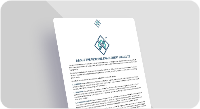 THE REVENUE OPERATIONS MATURITY MODEL COPYRIGHT © REVENUE ENABLEMENT INSTITUT E ABOUT THE REVENUE ENABLEMENT INSTITUTE The mission of the Revenue Enablement Institute is to educate and arm a new generation of growth leaders with the state - of - the - art management tools, skills, capabilities, and practices they will need to accelerate revenue g rowth and adapt to the new buying reality. Our faculty of academics and experts are actively working with owners, CEOs, and their growth leadership teams to develop research, education and management tools help them transform sales, marketing, and service system into high performing growth teams. Our efforts focus on the five key enablers of profitable and sustainable growth. 1 . LEADERSHIP – Succe ssful sales and marketing transformation will require new skills and leadership approaches. The next generati on of growth leaders must be coaches that find ways to get revenue teams to work together, and find better ways to use data, information, and techn ology as force multipliers. 2. TEAMWORK – Growth leaders will need new managerial architectures that break down organizational silos and foster teamwork across sales, marketing, and service at scale across the enterprise. Old hierarchical command and co ntrol approaches will be too slow, culturally toxic, and introduce too many points of leakage and failures as revenue opportunities move across functions. 3. COMMON INCENTIVES – Revenue teams can only succeed if they have a common purpose. Growth leade rs must define a single scorecard for success that will give disparate sales, marketing, and customer success teams the incentives to work together to grow revenue and customer lifetime value. Hierarchical, functional, and waterfall metrics based on linear sales funnels and independent functional roles will fail to either foster teamwork or address current custom er behavior. 4. INSIGHTS – All customer - facing employees need a fully transparent, 360 - degree, real - time view of the entire buying journey if the y are going to play like a team. Revenue teams must act on buying signals, location - based opportunities, or c hurn triggers in service within minutes instead of hours or days. Sharing information horizontally across the enterprise to inform and supp ort team s from across geographies, business units, and market segments is now the key to growing revenues, profits, c ompetitiveness and share price. 5. RETURN ON SELLING ASSETS – Revenue leaders must find ways to use technology as a force multiplier and team ena bler if they expect to succeed by dramatically increasing historically low levels of salesperson productivity , technology adoption and return on selling assets – content, technology, data, and automation. To do so, they must find ways to use AI - driven sale s tools and workflow automation to automatically enforce new sales methodologies into daily practices, input data into CRM profiles, and deploy all the expensive content, thought leadership, and playbooks created by marketing. We invite transformation minded CXO’s, CMOS, CSOs and CEOs to participate in our research and education program so they can apply what we learn to build higher performing revenue teams . You can learn more at www.reve nueenablement.com